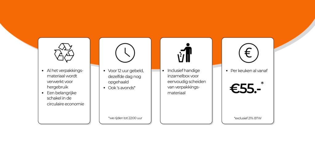 Alles doen voor een tevreden klant, u bent er druk mee. Verhoog de servicegraad voor uw klant en biedt een extra zekerheid om het eindresultaat nog meer glans te geven. Wij van Wedistri4All willen graag meewerken. En bieden onze diensten aan om zo snel mogelijk na oplevering van de keuken al de verpakkingen en het montageafval te verwijderen uit de woning. Al het materiaal dat wij afvoeren wordt daarna nauwkeurig gescheiden zodat het voor hergebruik bij onze partners wordt aangeboden.