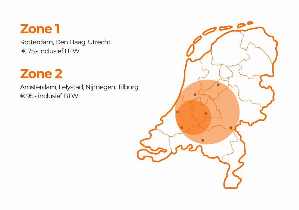 Wedistri4All heeft als richtlijn voor al zijn bedrijfsactiviteiten maatschappelijk verantwoord ondernemen. Zo vinden wij het belangrijk om efficiënt de routeplanning te maken. En daarbij de onderlinge afstand tussen de ophaalpunten niet te ver uit elkaar te laten liggen. Met onze 2-zone aanduiding is te zien in welk deel van Nederland wij onze dienstverlening uitvoeren. Twijfelt u of uw postcode in zone 1 of zone 2 is ingedeeld? Neem dan contact op met onze planning via 06-83703189 of stuur een Whatsapp bericht.